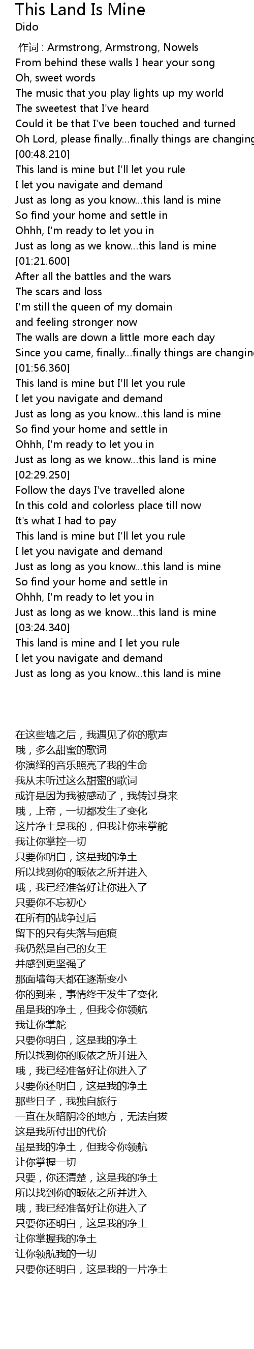 | [00:49.850] | This land is mine but I' ll let you rule |