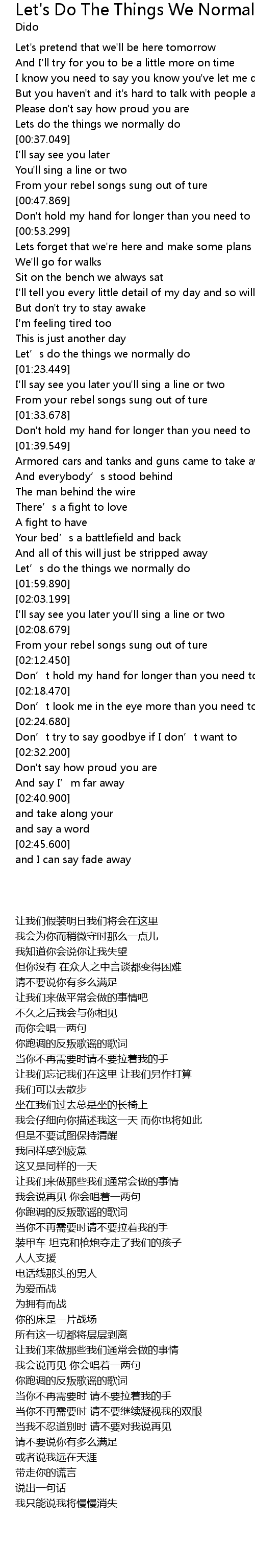 | [00:33.309] | Lets do the things we normally do |