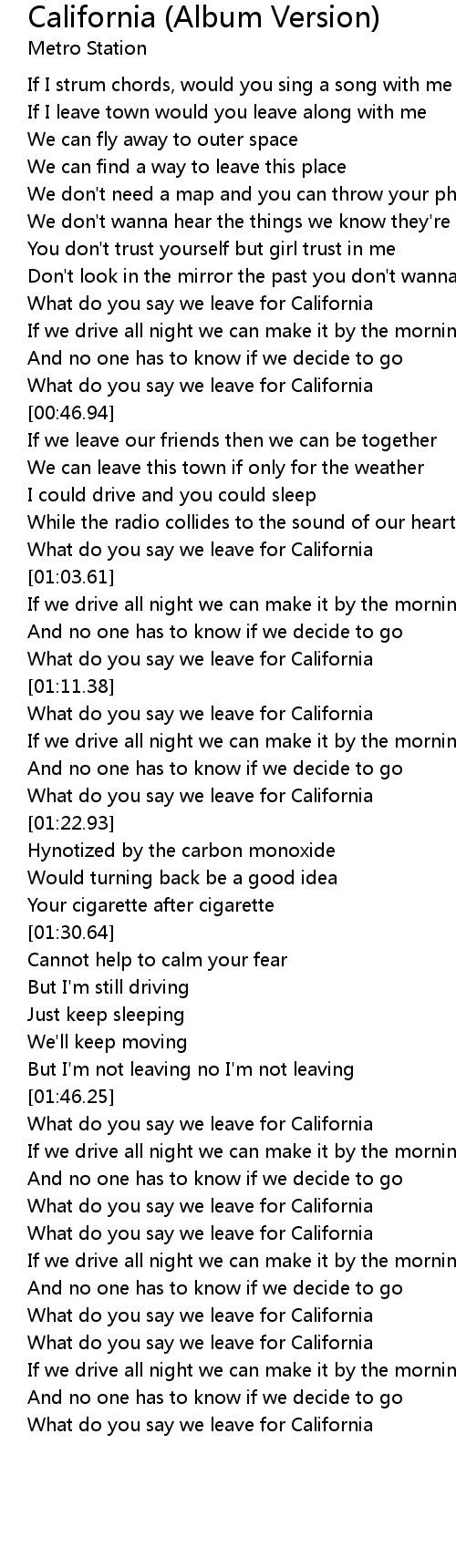 What do you say we leave for California |