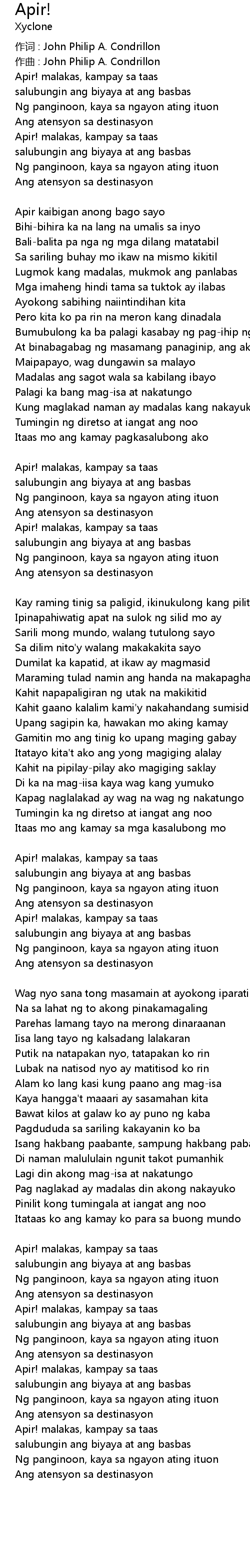 | 作词 : John Philip A. Condrillon | |