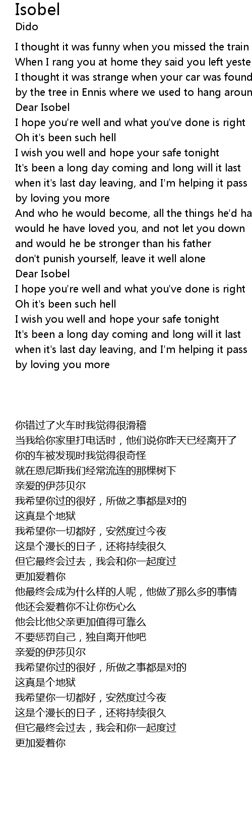| [02:09.50] | Dear Isobel |