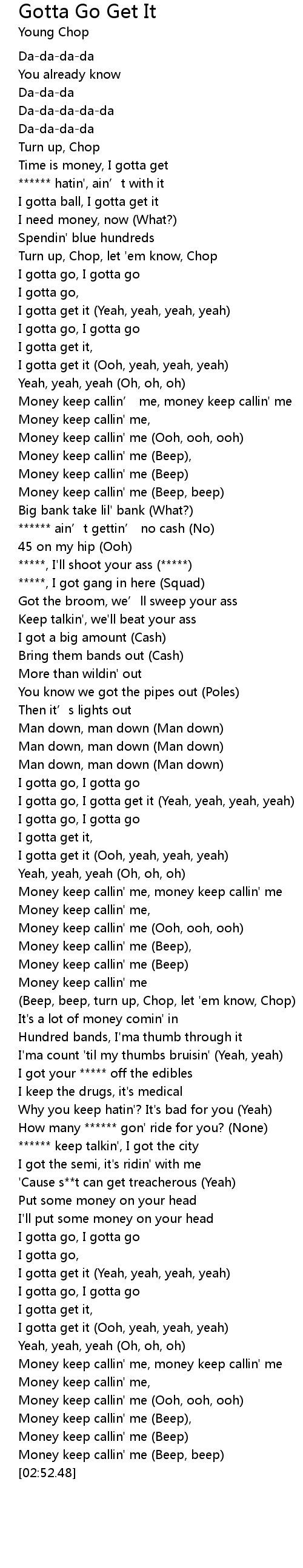 | [01:27.25] | I gotta go, I gotta get it Yeah, yeah, yeah, yeah |