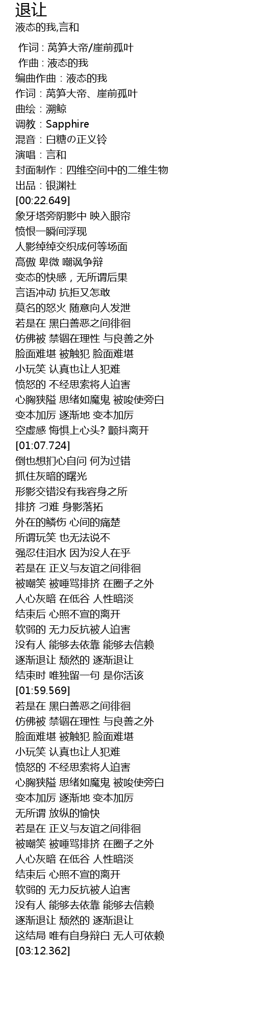 | [03:02.184] | 逐渐退让 颓然的 逐渐退让 |