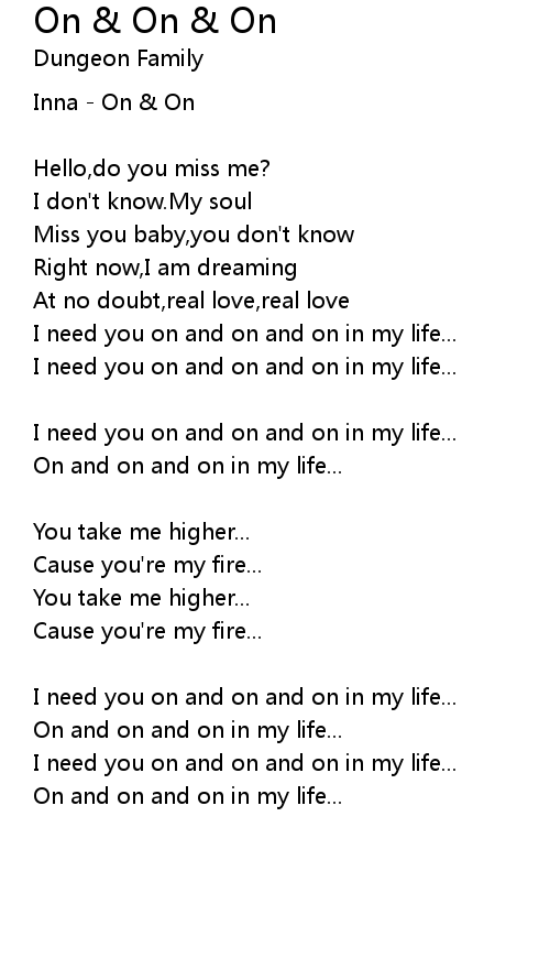 I need you on and on and on in my life... |
