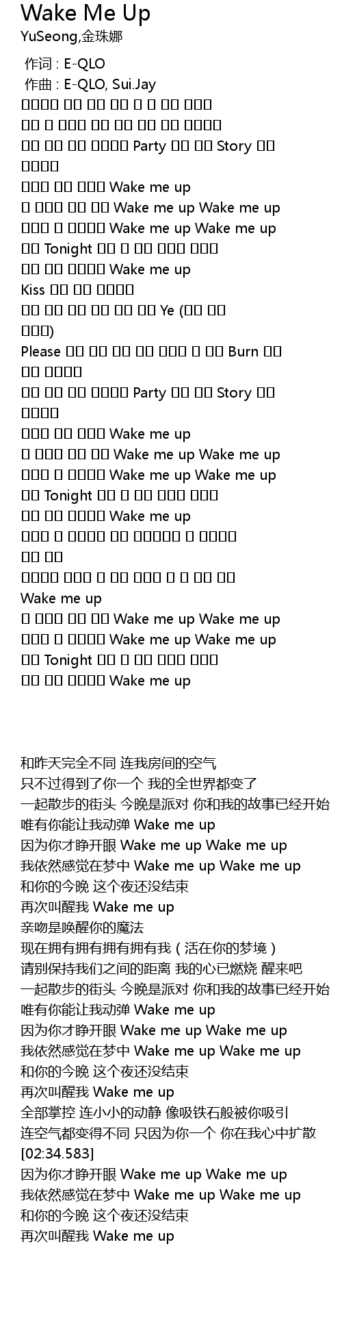 | [02:36.895] | 너 때문에 눈을 떴어 Wake me up Wake me up |