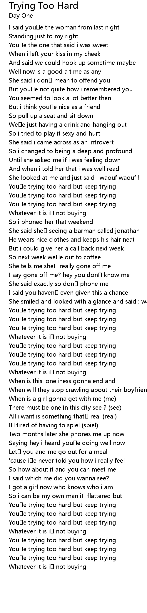 | Song | Trying Too Hard |