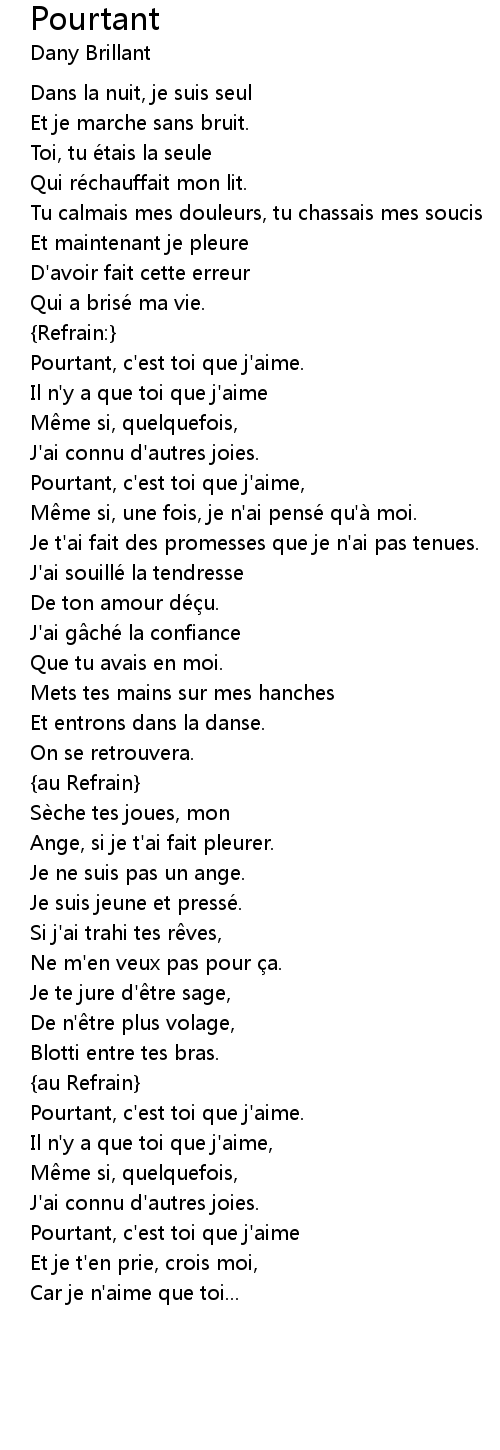 | Pourtant, c' est toi que j' aime, | |