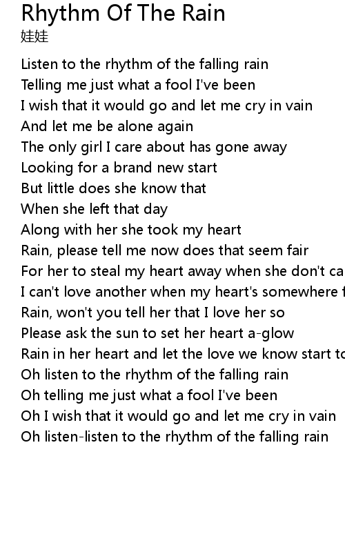 | Oh listen to the rhythm of the falling rain | |