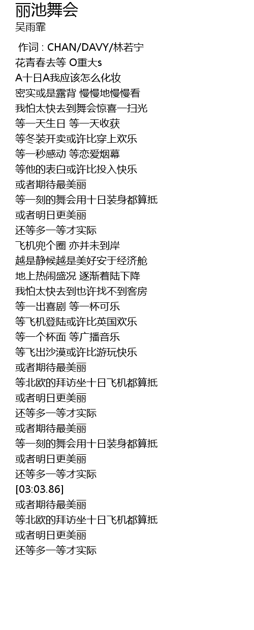 | [03:00.28] | hái děng duō yī děng cái shí jì |