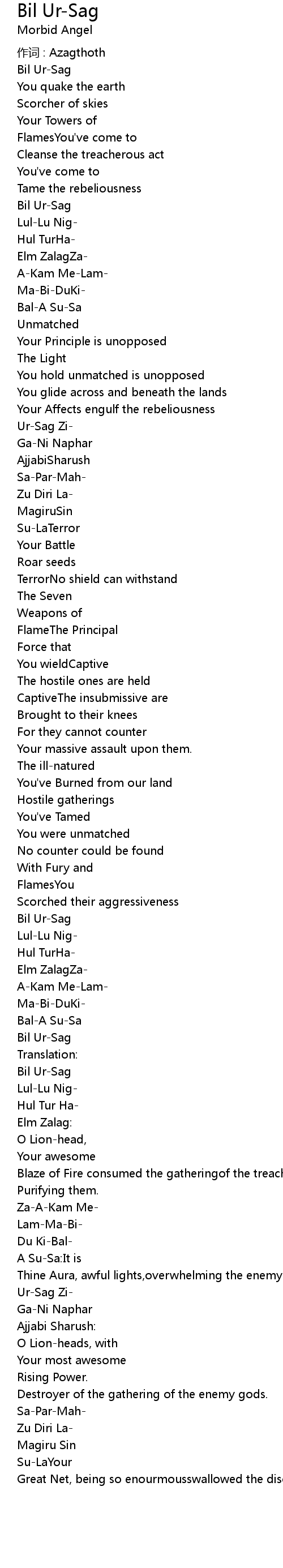 | 作词 : Azagthoth | |