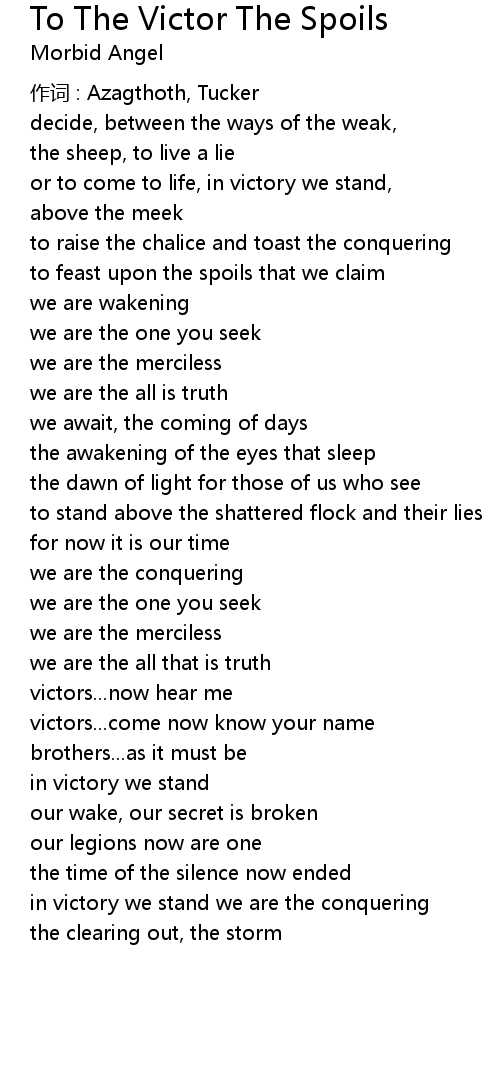 | Song | To The Victor The Spoils |