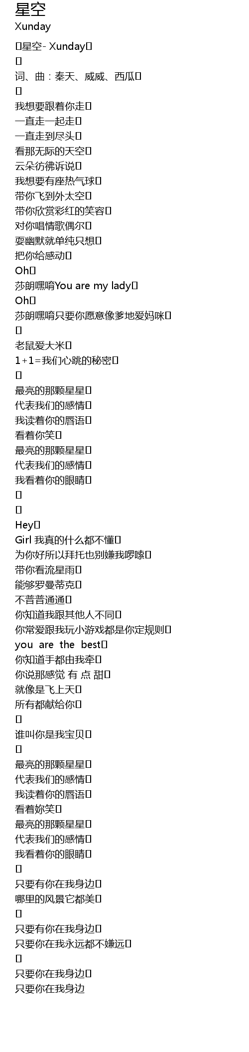 | 词、曲:秦天、威威、西瓜 | |