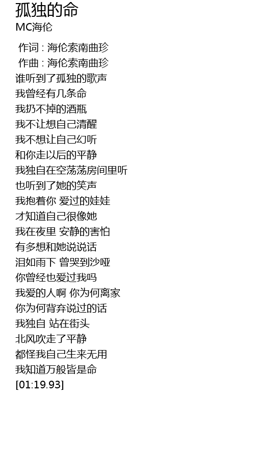 | [00:00.43] | shuí tīng dào le gū dú de gē shēng |