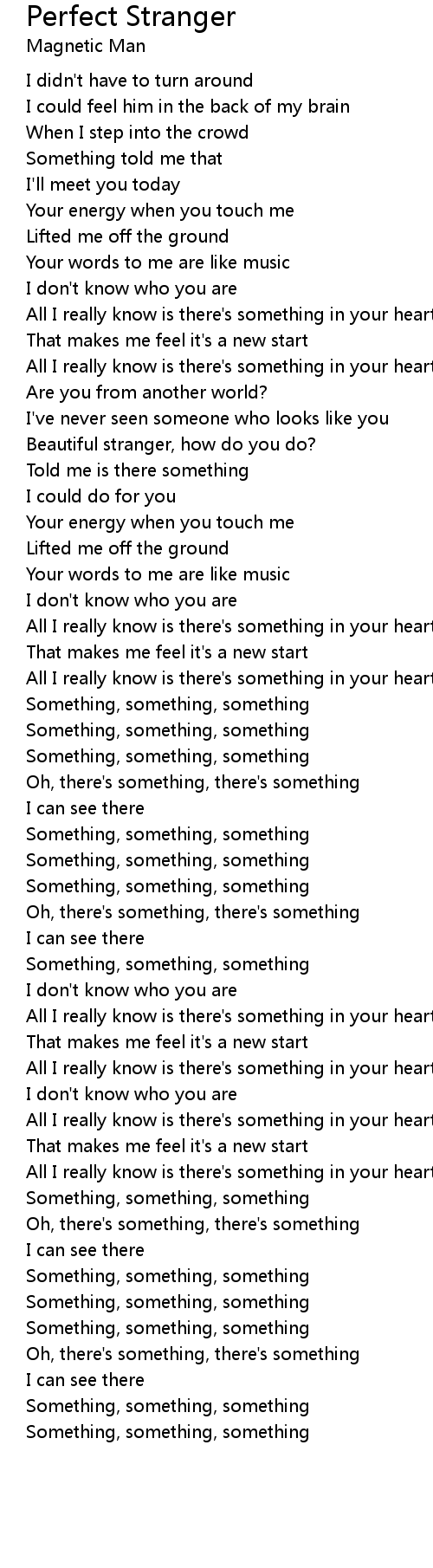 Beautiful stranger, how do you do? |