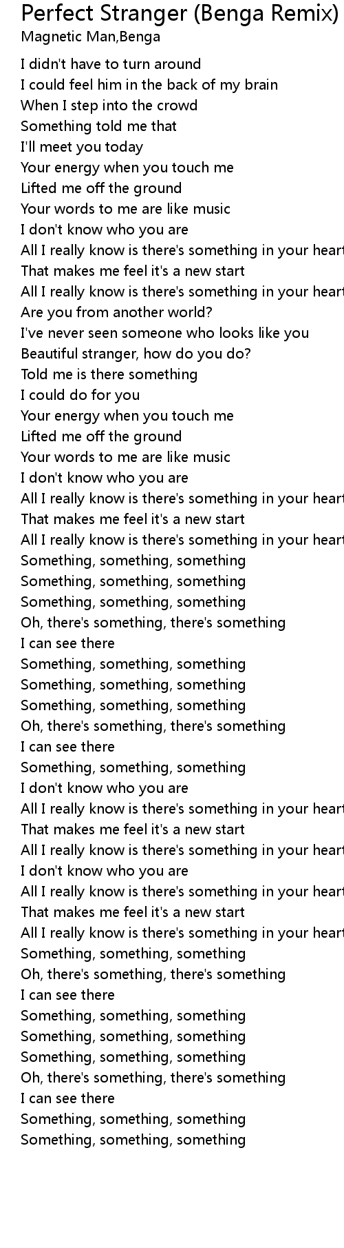 Beautiful stranger, how do you do? |