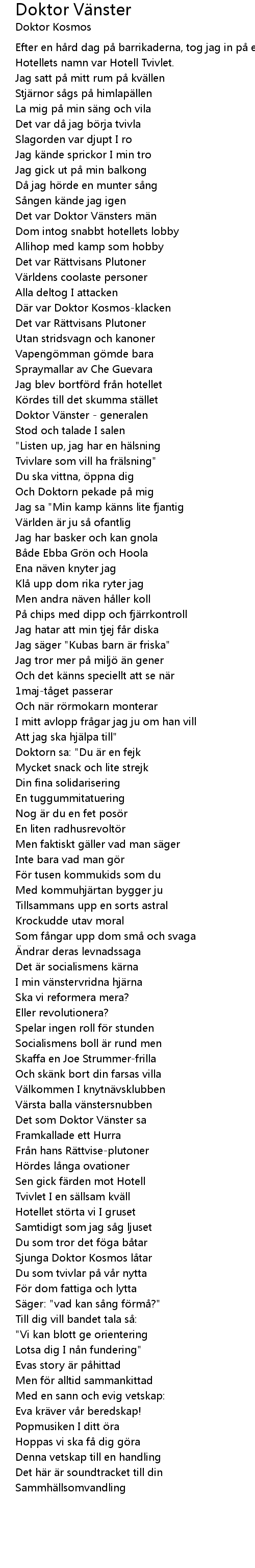 | Efter en h rd dag p barrikaderna, tog jag in p ett hotell. | |