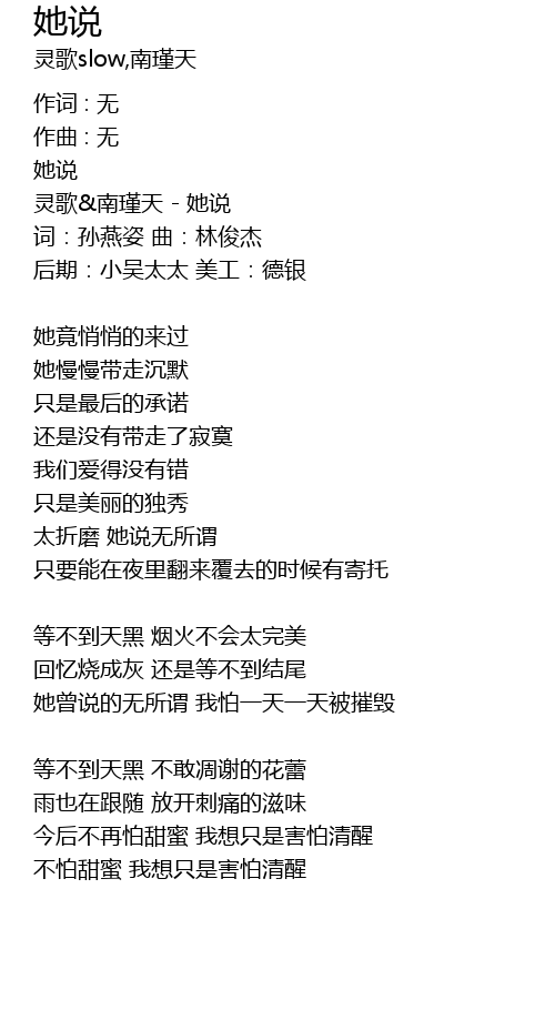 | 灵歌&南瑾天 - 她说 | |