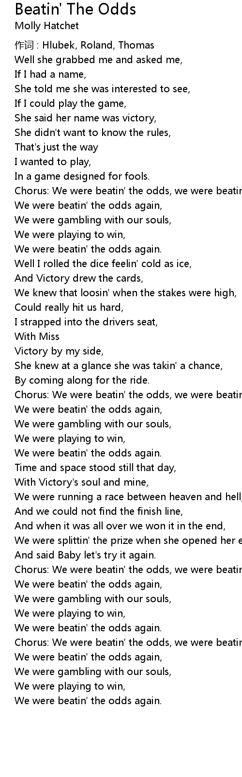 | Chorus: We were beatin' the odds, we were beatin' the odds, | |