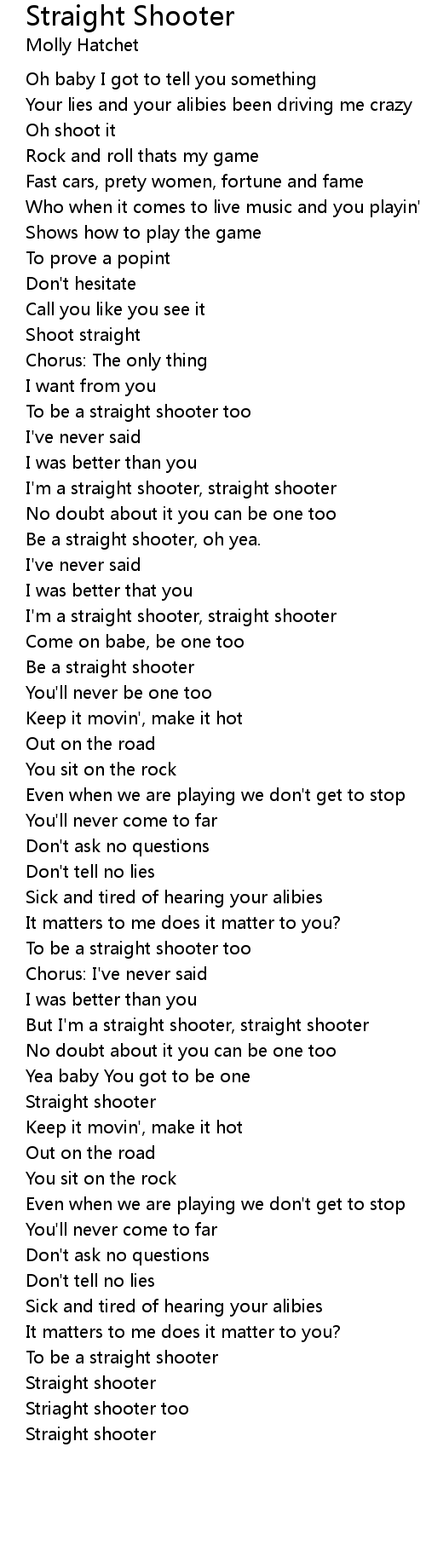 But I'm a straight shooter, straight shooter |