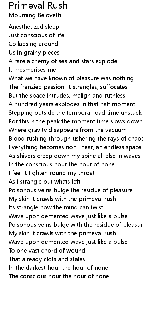 My skin it crawls with the primeval rush |