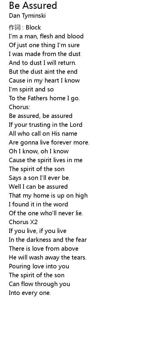 | Song | Be Assured |