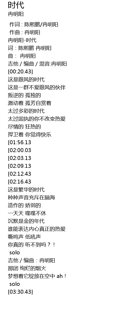 | [00:00.02] | 冉明阳-时代 |