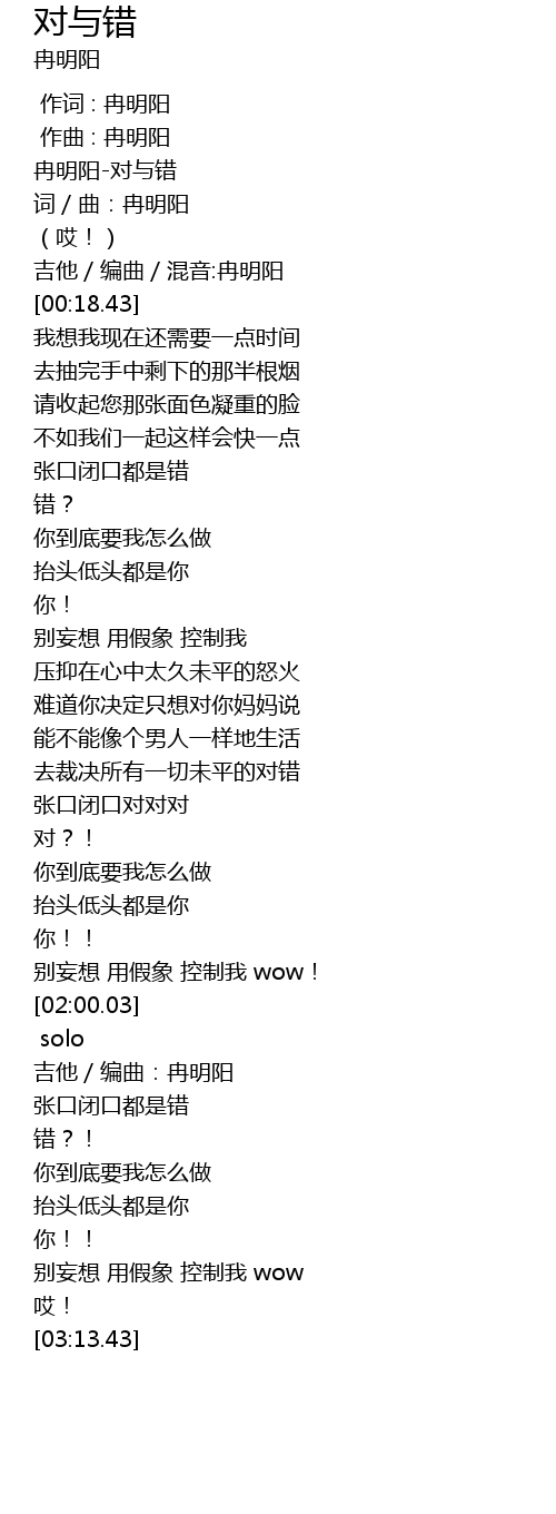 | [00:13.43] | 吉他/编曲/混音:冉明阳 |