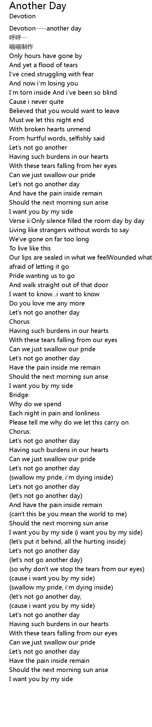| [03:48.98] | (let's not go another day) |
