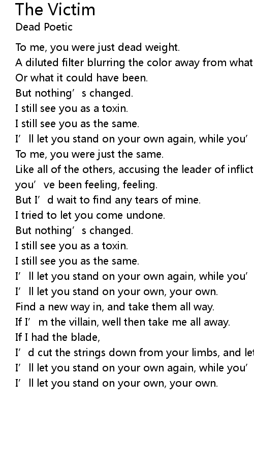 | I' ll let you stand on your own again, while you' re playing the victim. | |