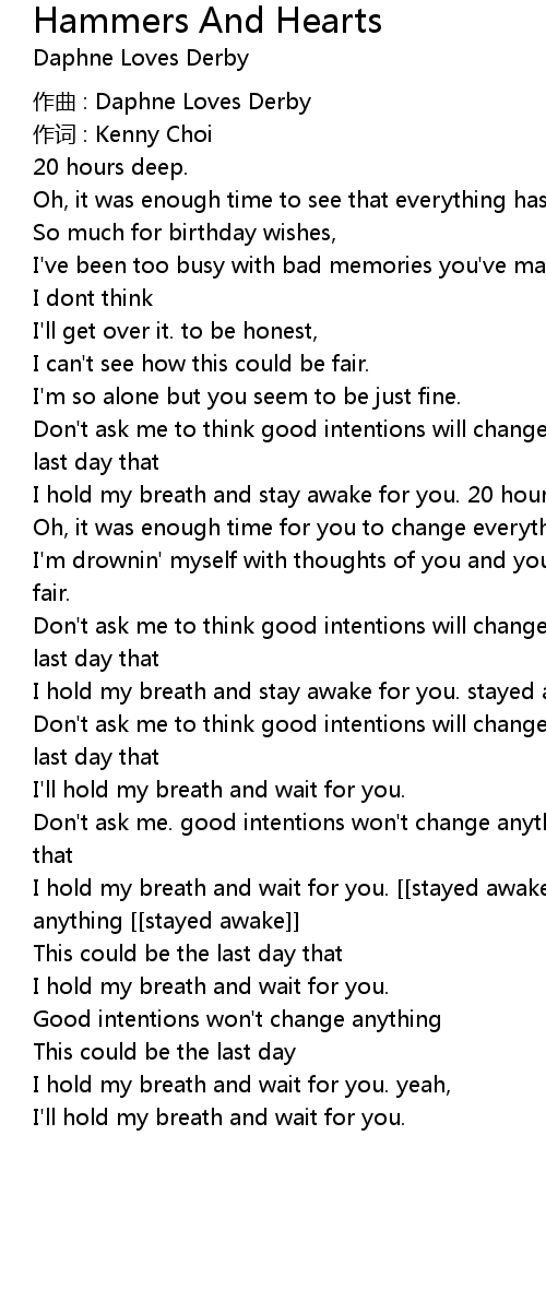 | I hold my breath and wait for you. [[stayed awake]] good intentions won't change anything [[stayed awake]] | |