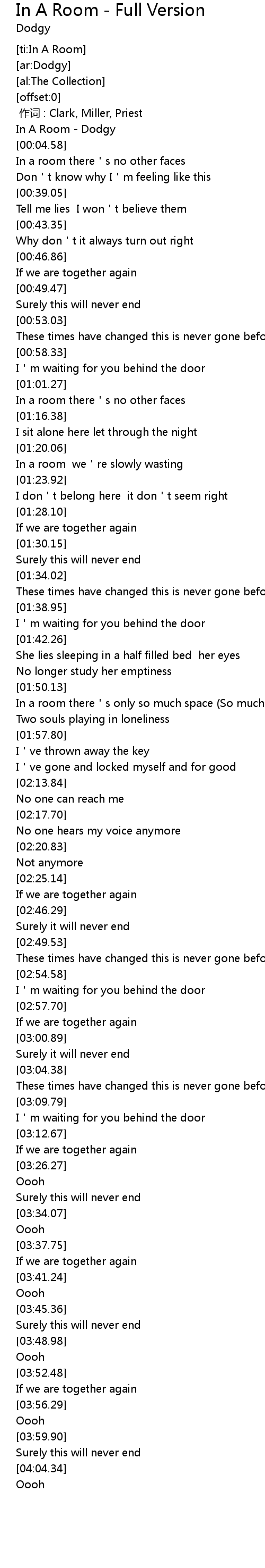| [00:00.00] | 作词 : Clark, Miller, Priest |
