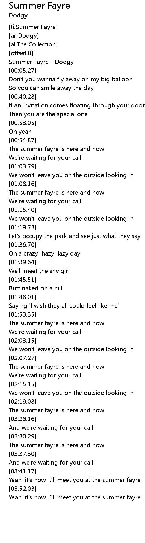 [ti:Summer Fayre] |
