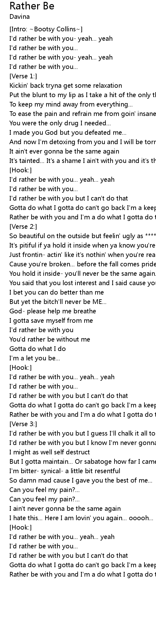 Rather be with you and I'm a do what I gotta do to stay away from you... |