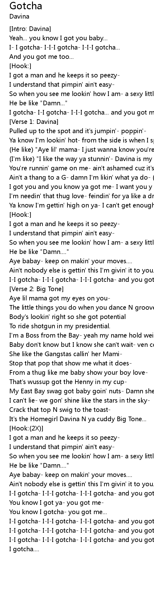 I- I gotcha- I-I-I gotcha- I-I-I gotcha... |