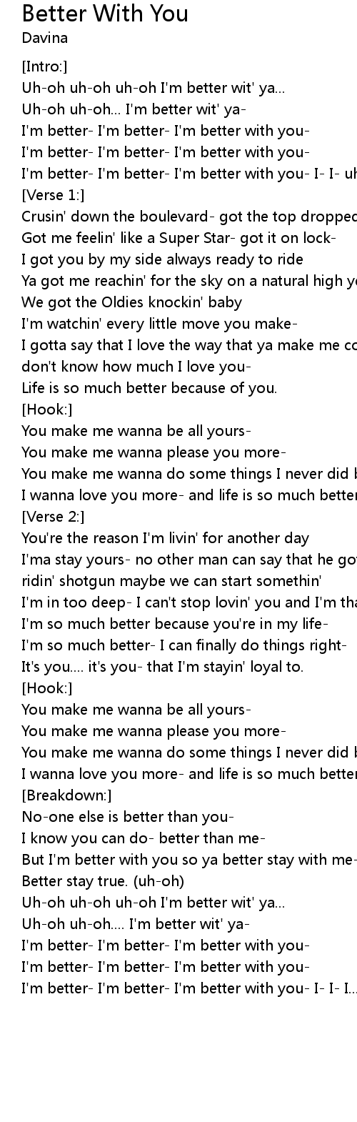 But I'm better with you so ya better stay with me- |