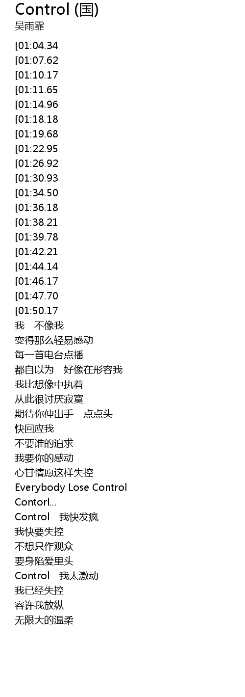 | [00:56.04][01:44.14][02:24.01][03:12.53] | Control Lose Control |