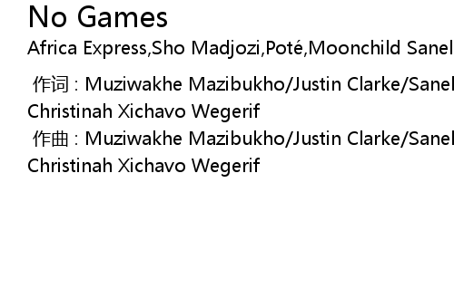 | [00:00.000] | 作词 : Muziwakhe Mazibukho/Justin Clarke/Sanelisiwe Twisha/Maya Christinah Xichavo Wegerif |