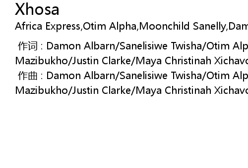 | [00:00.000] | zuò cí : Damon Albarn Sanelisiwe Twisha Otim Alpha Muziwakhe Mazibukho Justin Clarke Maya Christinah Xichavo Wegerif |