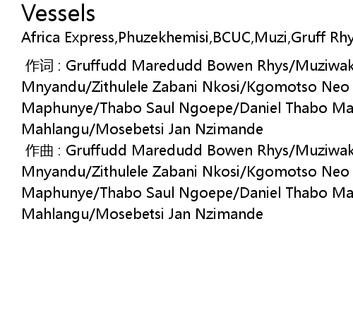 | [00:00.000] | 作词 : Gruffudd Maredudd Bowen Rhys/Muziwakhe Mazibukho/Zibokwakhe Mnyandu/Zithulele Zabani Nkosi/Kgomotso Neo Mokone/Letlhogonolo Atlarelang Maphunye/Thabo Saul Ngoepe/Daniel Thabo Mangel/Ephraim Skhumbuzo Mahlangu/Mosebetsi Jan Nzimande |