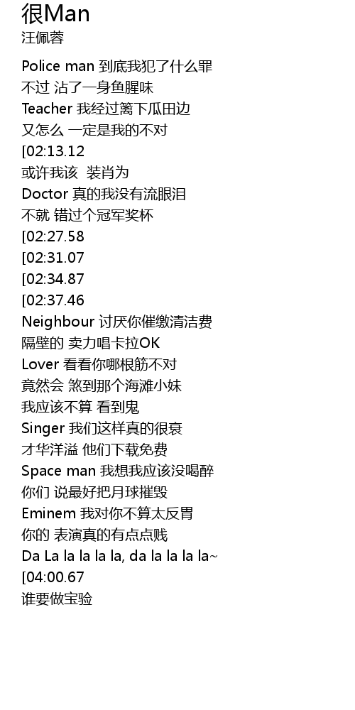 | [00:46.42] | Police man 到底我犯了什么罪 |