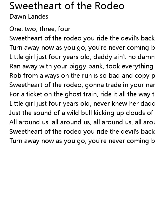 Sweetheart of the rodeo you ride the devil's back |