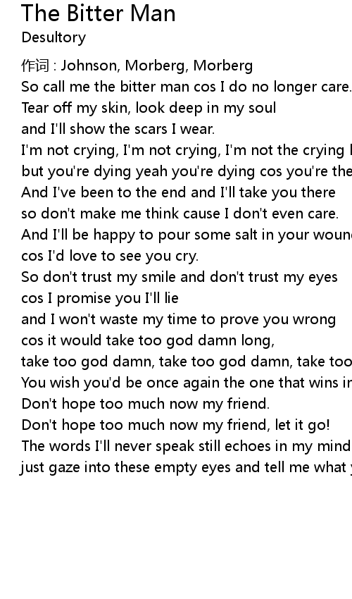 | So call me the bitter man cos I do no longer care. | |