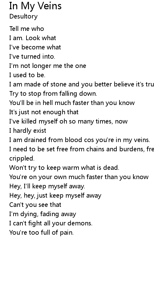 I am drained from blood cos you're in my veins. |