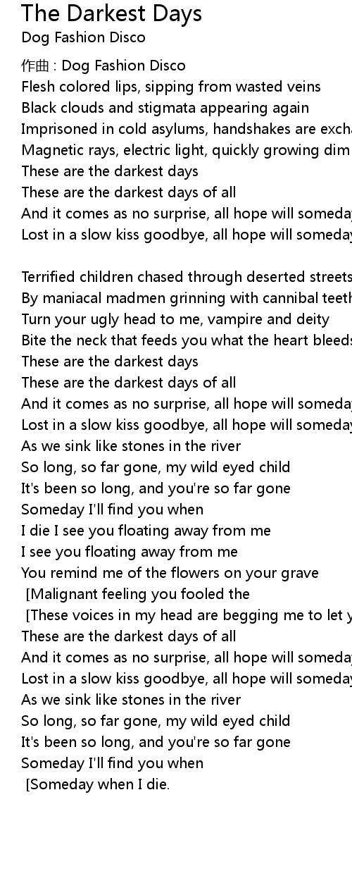| Lost in a slow kiss goodbye, all hope will someday die | |