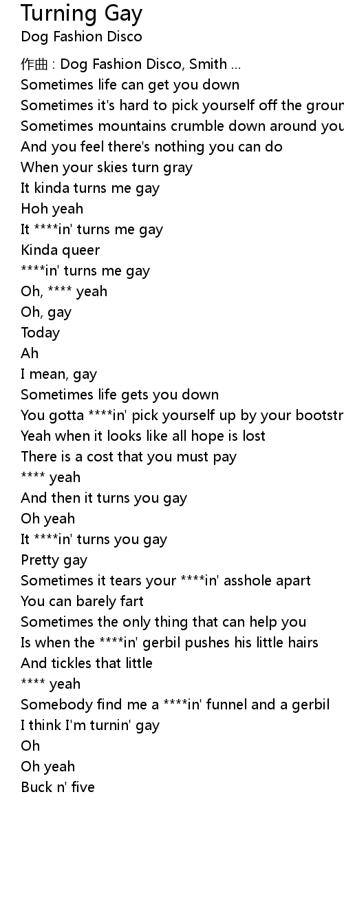 | It in' turns me gay | |