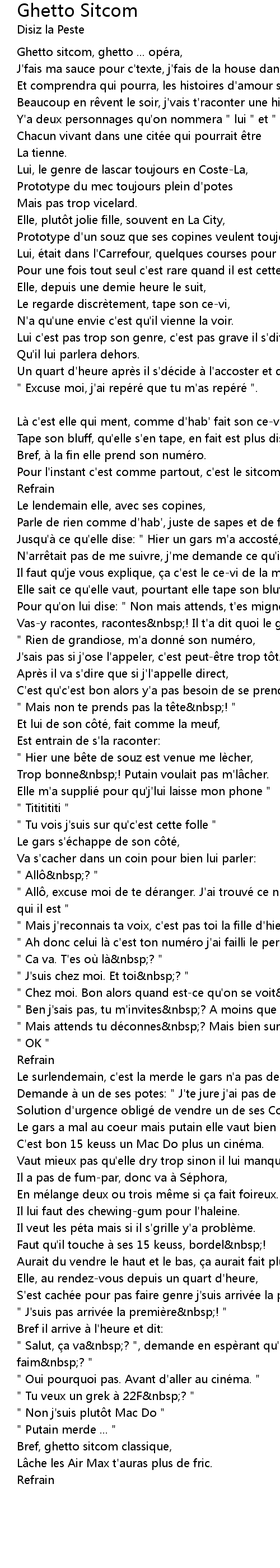 | J' fais ma sauce pour c' texte, j' fais de la house dans le pera | |