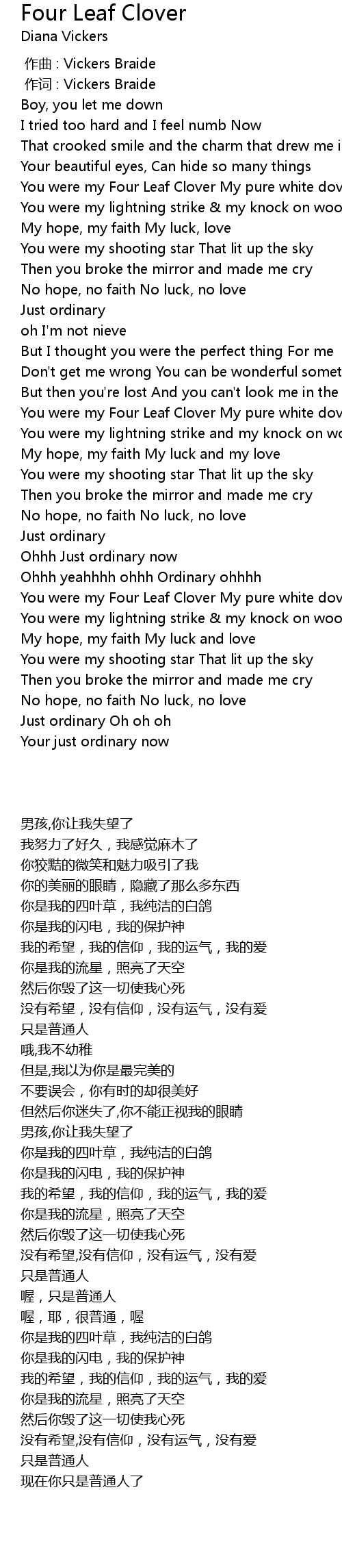 | [00:41.460] | You were my Four Leaf Clover My pure white dove |