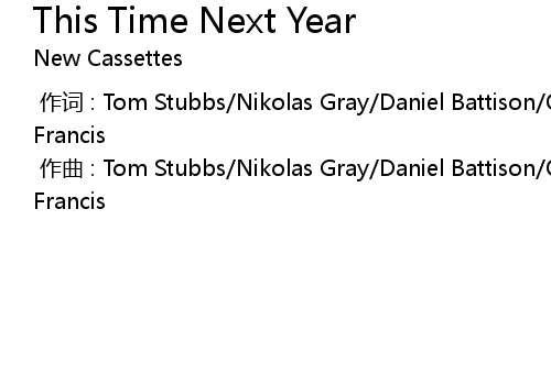 | [00:00.000] | 作曲 : Tom Stubbs/Nikolas Gray/Daniel Battison/Owen Reed/Tommy Francis |