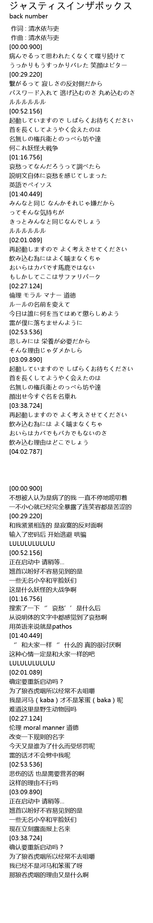 | [03:34.106] | 顔出せ今すぐ名を名乗れ |