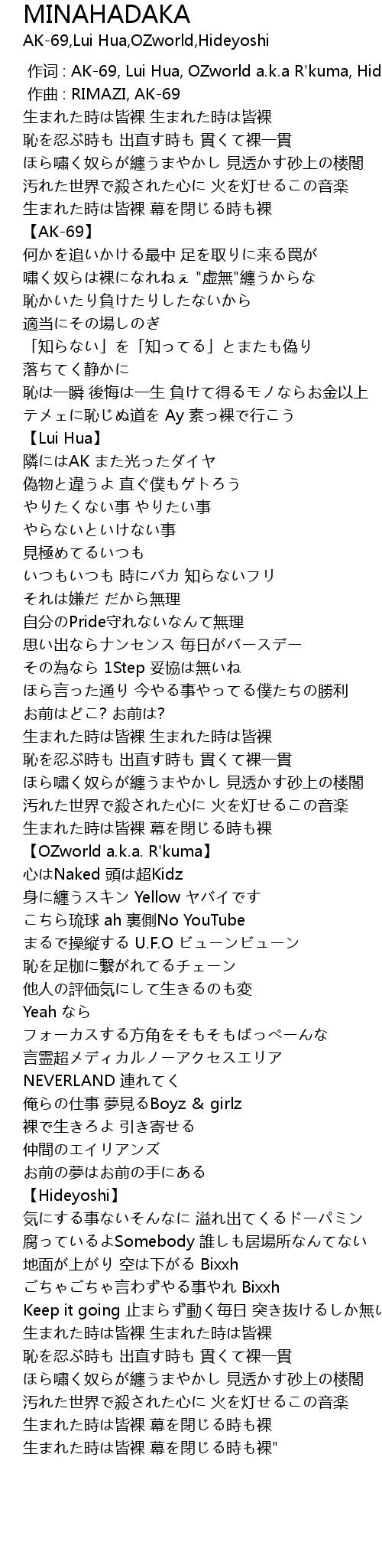 [00:00.000] zuò cí : AK69, Lui Hua, OZworld a. k. a R' kuma, Hideyoshi